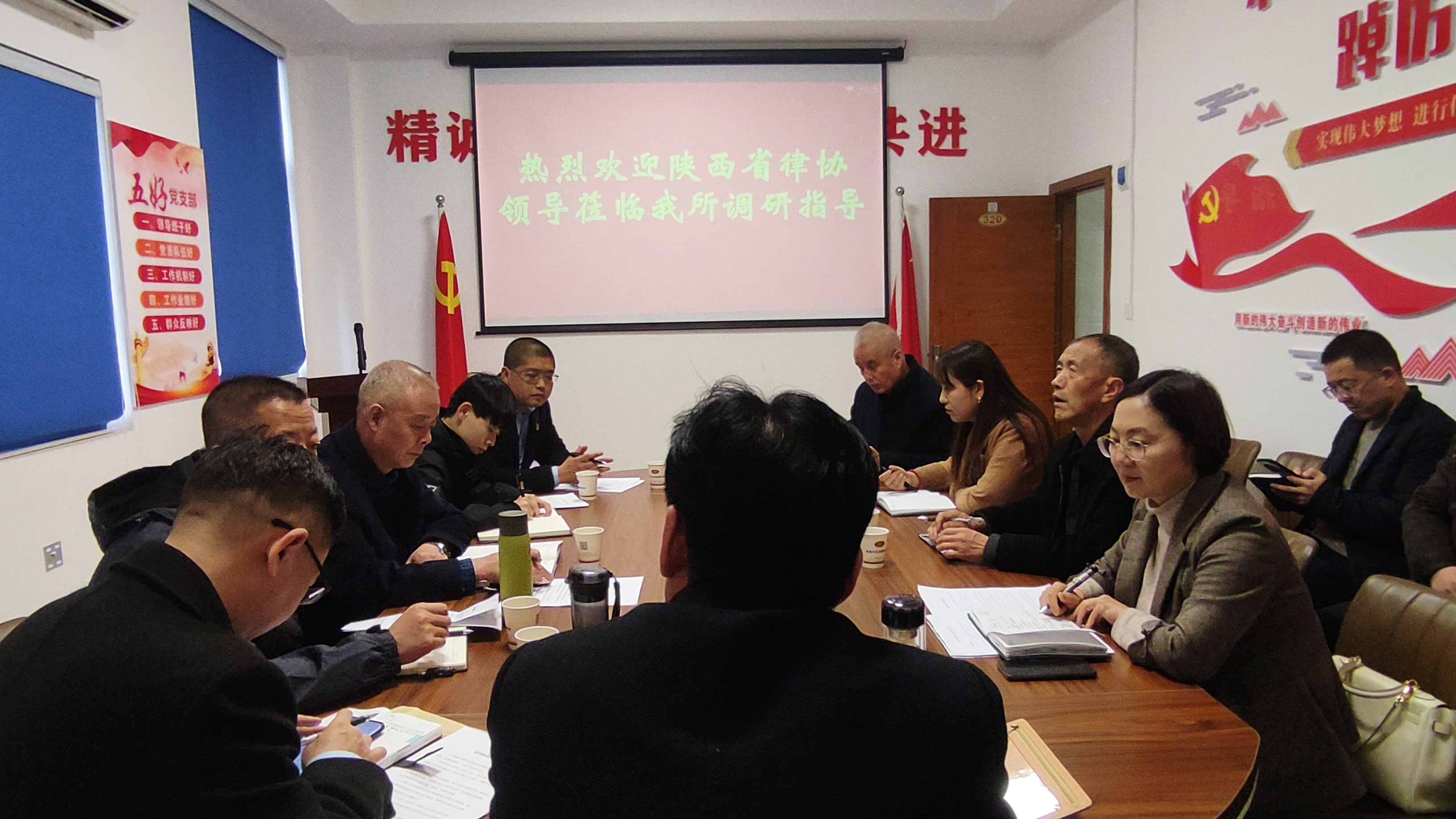 3月23日下午,陕西省律师协会副会长王小军、监事薛建文、常务理事师学宁、常务理事王刚、投诉查处中心齐战文、办公室赵竞昇一行在宝鸡市律协副会长辛宁叶等人陪同下,来到陕西行中律师事务所开展调研。