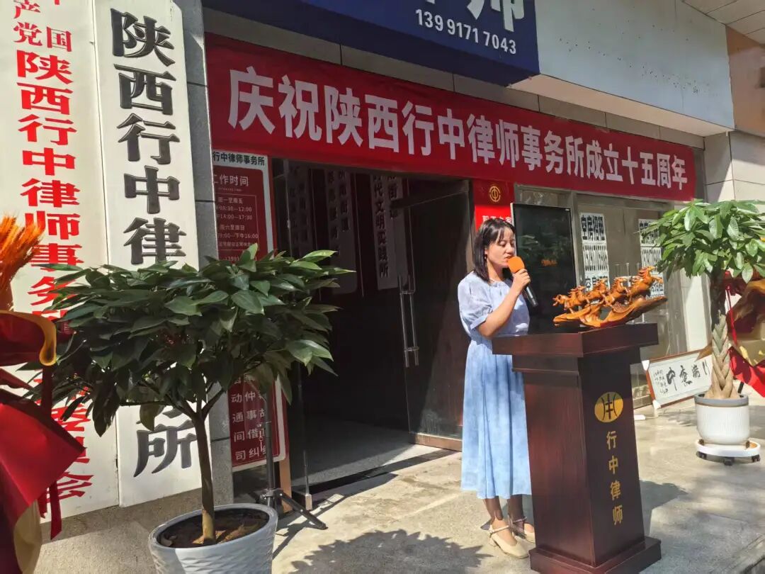 律所创始人张利民律师以《日月不淹而功有成,行中律师永不止步》为题做了致辞,他深情回顾了律所从筚路蓝缕到枝繁叶茂的蜕变历程中的艰辛与成绩,诚挚感谢了社会各界的关心支持,殷切希望律所在法治道路上步履不停、勇毅前行!律所发展的接力棒传到了新一代青年律师的手中,张娜律师做为律所继任主任,她以年青人的朝气与活力、新思维与新理念展望和描绘了律所的未来,号召大家不忘初心、凝聚力量、法途逐梦、共谱华章。律所在十五年的发展征程中始终奉行“好律师一身正气,会辩、善辩、敢辩,当事人无忧无虑,省心、放心、安心”的执业风格,凭借专业优质的法律服务,赢得了社会各界的广泛赞誉与信赖。值此十五周年所庆,社会各界友人以不同方式表达了祝贺。律所在开展所庆的同时不忘肩负的社会责任,在短暂的庆典活动结束后,律所在门前设点发放法制宣传品、开展法律咨询,同时大家还分组深入金台、渭滨、陈仓、凤翔、高新开展法治宣传。为提升法制宣传效果,律所在上级司法部门提供的宣传资料基础上还投入数万元印制了大批宣传资料和用品。众行而致远,面向未来行中律师将继续团结齐心、奋楫扬帆、砥砺前行、勇拓新局,在推进社会法治建设中贡献力量,在争做党和人民满意的好律师中奋勇争先!