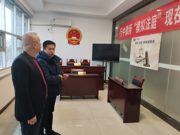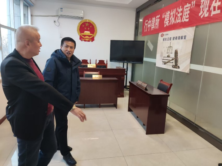 律所副主任陈彦龙及在所律师参与了座谈,座谈会后倪天云所长三人一行参观了律所模拟法庭,创始合伙人张利民律师详细介绍了模拟法庭的建设和开展情况。