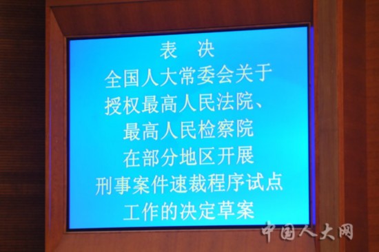 2014年6月,全国人大常委会作出《关于授权在部分地区开展刑事速裁程序试点决定》并授权作出《关于在部分地区开展刑事案件速裁程序试点工作的办法》对速裁程序适用的案件范围和条件作了明确。
