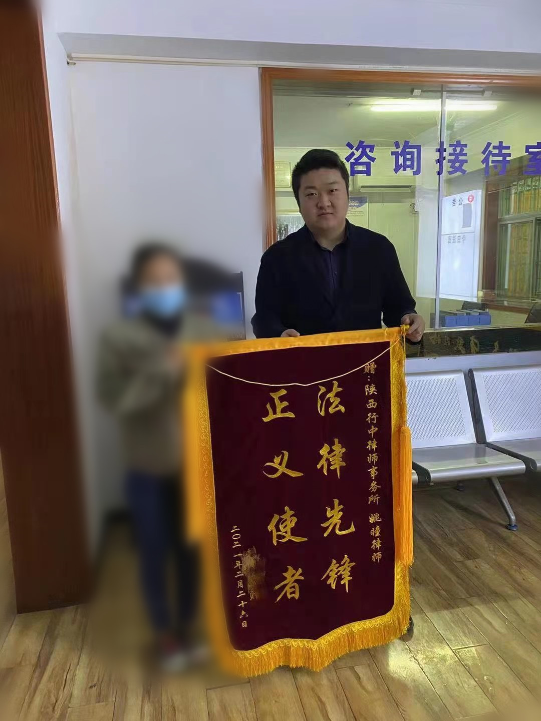 行中律师一直立志于帮助弱势群体,本案中小梅和其孩子均属于弱势群体,妥善的为其维权,减少其诉累也是案件解决的重中之重,案件解决之后,十分满意的小梅也给本案的主办人姚曈律师送来一面沉甸甸的锦旗,表达自己的感谢之意。