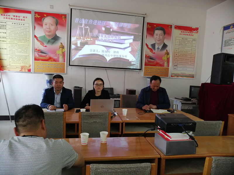 2019年4月19日下午,陕西行中律师事务所陈旭玲律师应渭滨区相家庄村村委会之邀,为该村党员及村民代表60余人进行了法律知识专题讲座。