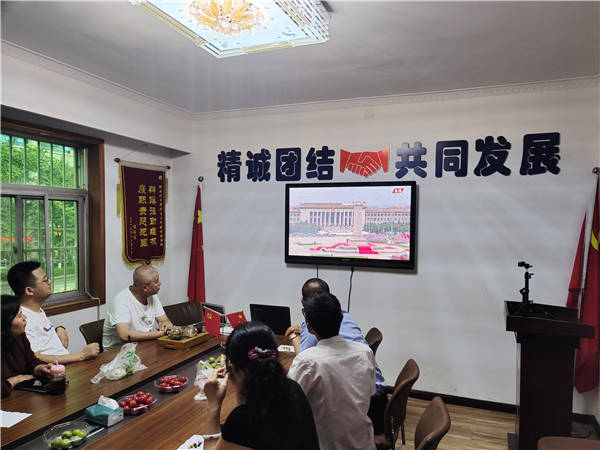 随着庆祝大会大家共同回顾了我党的百年奋斗的光辉历程,为我党取得的丰功伟绩感到骄傲和自豪,为实现中华民族伟大复兴充满信心。收看结束后,大家的心情依旧激动和兴奋,随即召开了座谈会,从自己身边的变化畅谈我党的伟大与光荣。